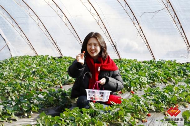 图为该公司女职工正在采摘草莓