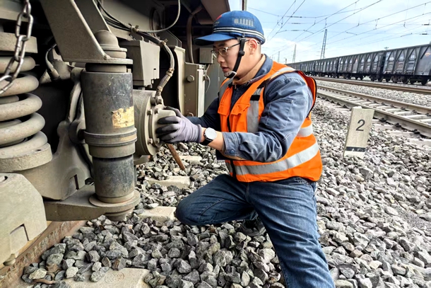 年末岁尾,铁路运输迎来生产攻坚期,机务公司运用车间紧扣运输任务目标,以“保供应、严标准、守安全”为核心,全面打响年末冲刺攻坚战,为能源保供大动脉畅通保驾护航。图为机车乘务员对走行部进行检查为保障机车精准调配与高效供应,车间优化调度体系,动态调整机车排班,建立“实时监控+快速响应”机...
